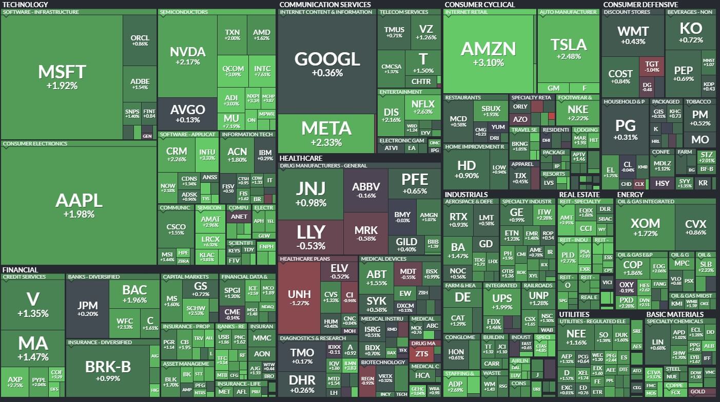 미국 증시는 금융불안감에 대한 완화 분위기가 5일 연속 이어짐에 따라 크게 상승했다. 이에 간단명료하게 2023.03.29일 미국 증시를 요약 해 보고 몇몇 특징적인 기업 이슈에 대해 살펴보고자 한다.